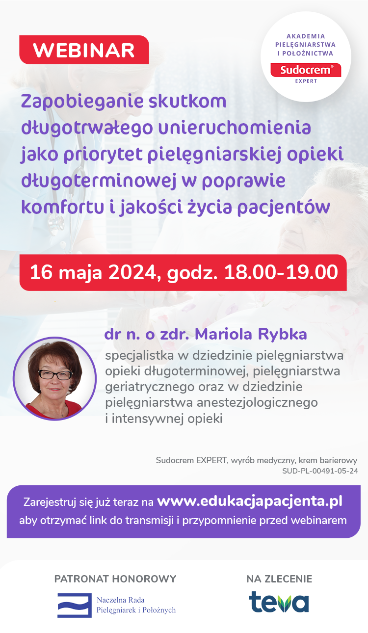 WEBINAR Zapobieganie skutkom długotrwałego unieruchomienia jako priorytet pielęgniarskiej opieki długoterminowej w poprawie komfortu i jakości życia pacjentów.